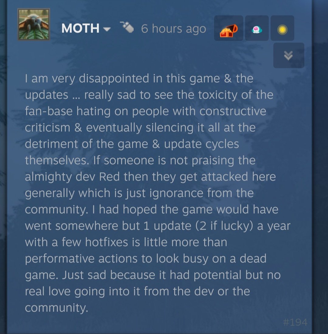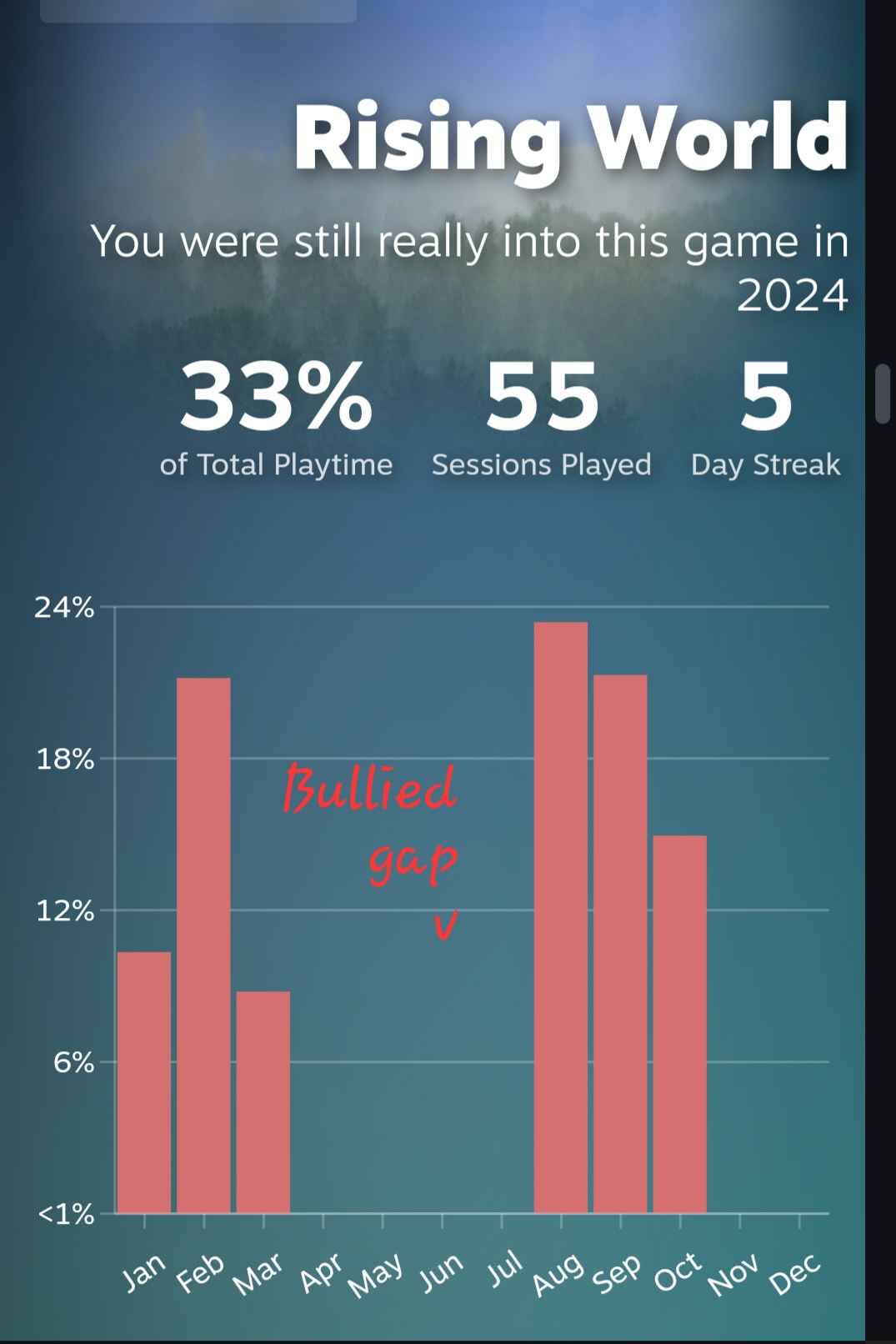 Obviously, Red51 chose to chew me out, not CursedXistence for his Teacher’s Pet behaviour, and now we’re here with 2 years-plus hatred for one another. Maybe actually yell at the guilty party actively sabotaging your game, and not those who had to work in hostile environments to afford a new PC to play Rising World during its Java days. I was thankful I was still able to play on the Unity version, and it also runs 90% well on the Steam Deck. Some issues, but it works. It’s however a shame there’s too much retardation in the Rising World forums. Both of them. I still follow Rising World because it’s genuinely a fun game, the people however aren’t. They’re “S.P.E.C.I.A.L” in that Fallout way.