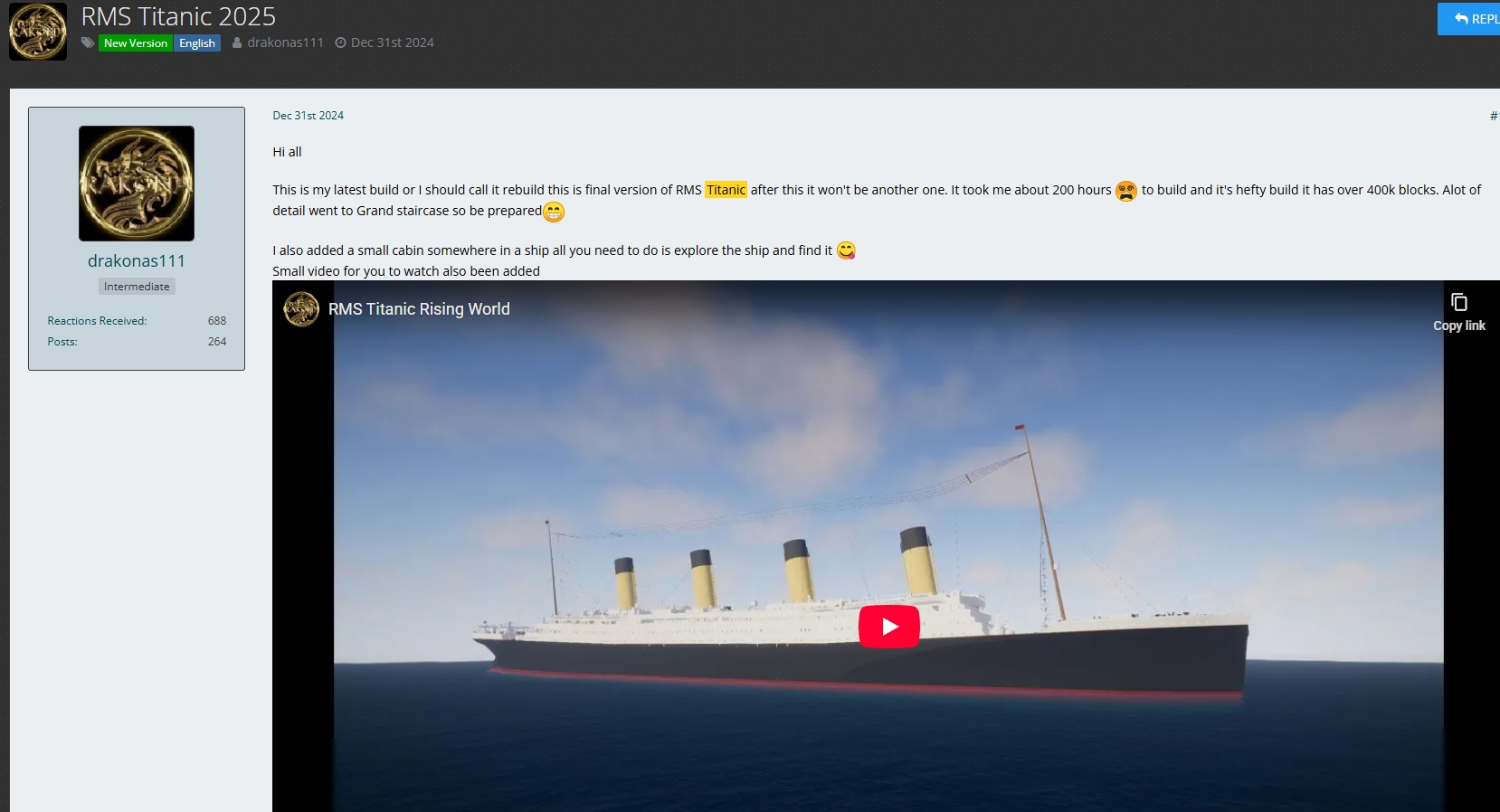 I’m not “racist”, I however don’t want to see retardation in this world. I shall always praise the Japanese because of how they’ve welcomed me into Japan in both 2023 and 2024. It’s night and day in how they treated me, and how Rising World folks and imposters have treated me. I will however shout out Drakonas, they’ve yet to berate me. They’ve also painstakingly created Titanic. As long as they don’t betray me I’ll shower them with genuine praise.