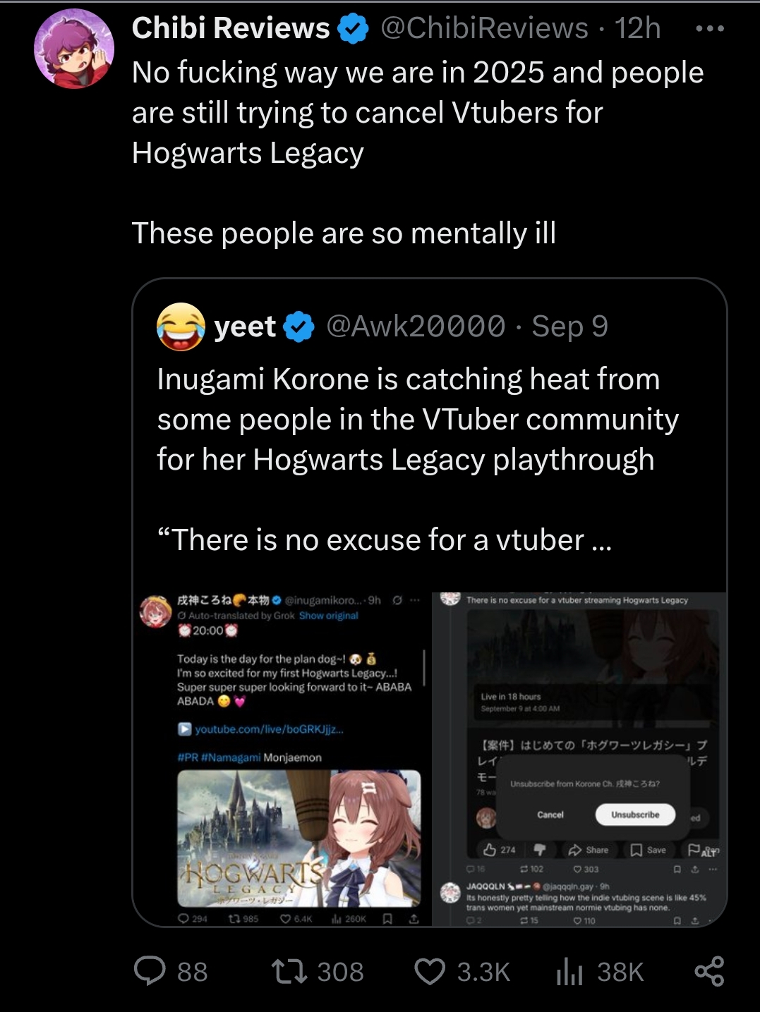 No, I’m not an ‘incel’ because that’s a hollow term. It genuinely means nothing when internet folks use it. No normal person uses the world ‘incel’. As for CursedXistence again, I simply post game-related topics of gaming censorship, but because he leans Left, obviously he’s pissed off with me. Of course he is.