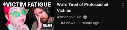 As noted in the ‘Victim fatigue’ screen capture, people are actual fed up with professional actors who pretend to be victims on a political level. We’re all done with it, hence why I posted what I posted about gaming censorship and people’s fake crocodile tears pretending to be offended by natural orders in this word. God forbid people get naked and have a shower naked, that’s Transphobic! How offensive! 😉