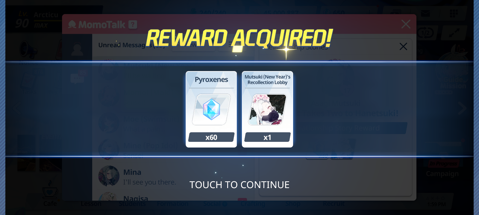 I spent my January 18th and 19th catching up on Blue Archive Momotalk to obtain the blue gems to recruit Eri to my side. I spent a lengthy while reading to various character’s stories, gradually obtaining more and more lobby wallpapers for each and every one of those I read through.