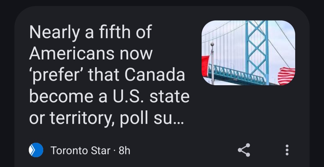 Canada turned mostly into North Korea via political propaganda pushed by CBC, CTV, etc, and it’s pathetic. Then they have to the nerve to antagonize the Americans. To pretend we’re better than the Americans when we’re just infantile toddlers, demonizing our very friend who feeds us. We rely on USA. Elbows up? No! A spank in the ass for a spoiled, bratty Canada. Fuck off.